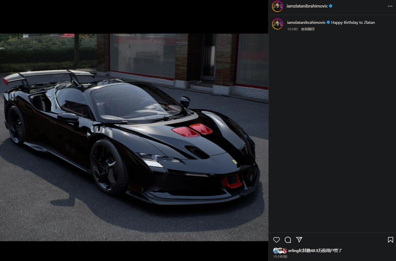 依旧法拉利!伊布社媒再晒爱车为自己庆生:祝兹拉坦生日快乐