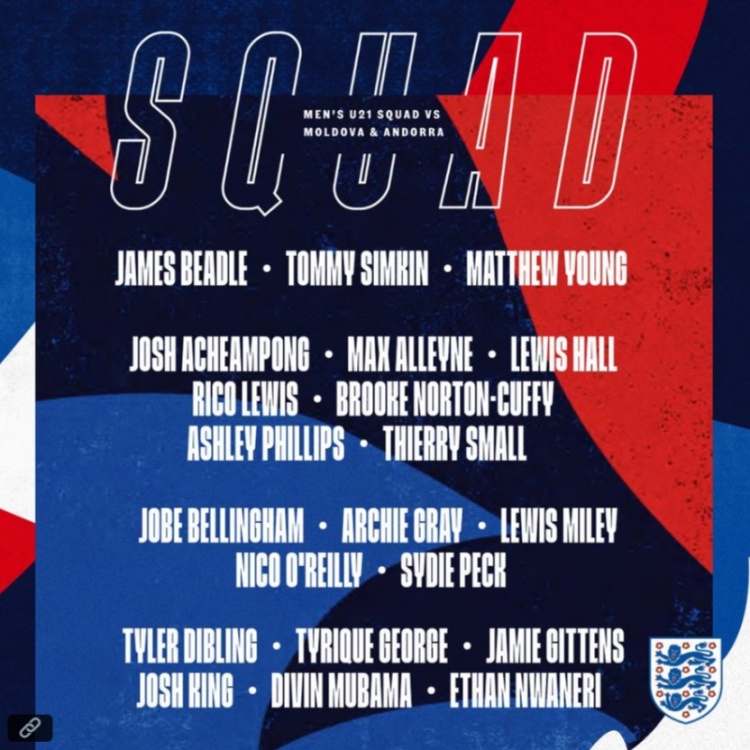 10月3日讯 英格兰U21队公布本期国际赛事 日大名单,小贝林厄姆、恩瓦内里、吉滕斯、里科-刘易斯在列。英格兰U21队本月进行两场U21欧锦赛预选赛的较量,分别是10月10日对阵摩尔多瓦以及10月13日对阵安道尔。