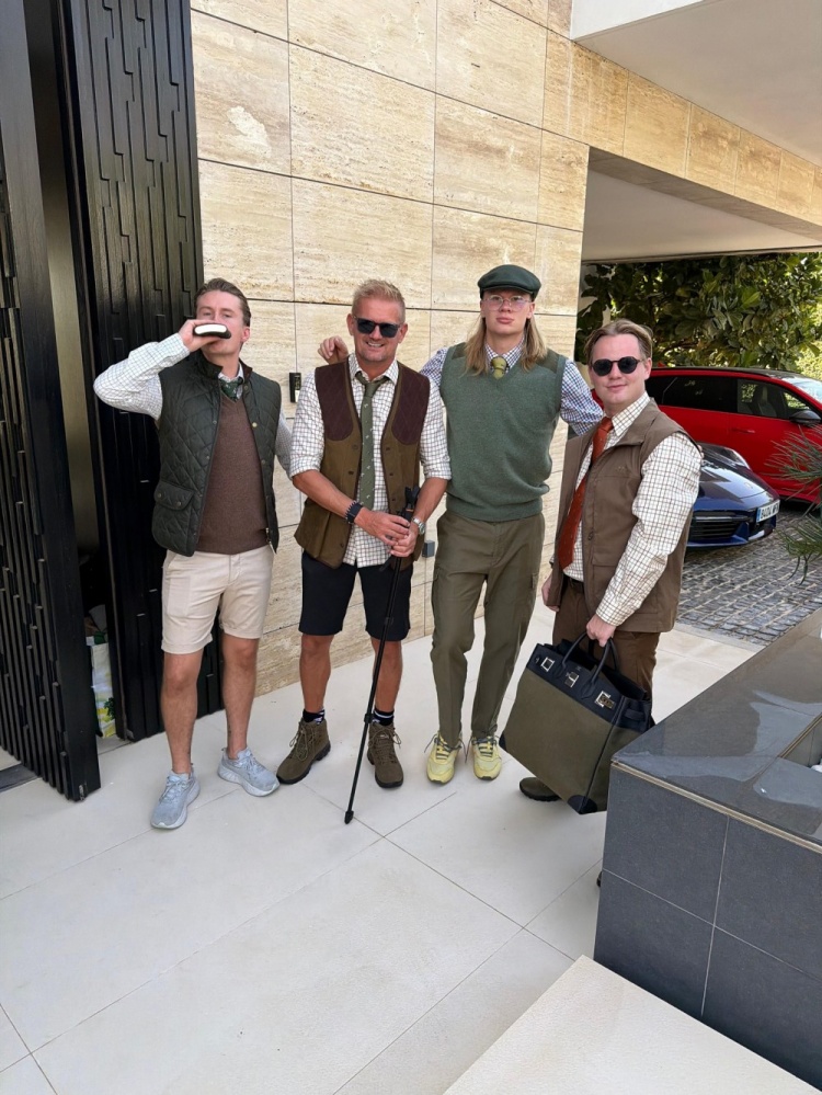 哈兰德的整体装扮与自然融为一体,配文:“迷彩。”