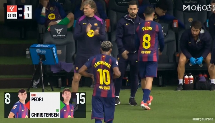 赛事 第63分钟,亚马尔、佩德里被巴德吉和克里斯滕森换下