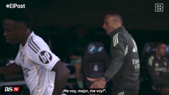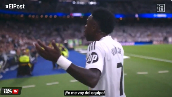 10月27日讯 据DAZN报道,维尼修斯在国家德比被阿隆索换下后剧烈 反应:“我要离队,立刻就走!”