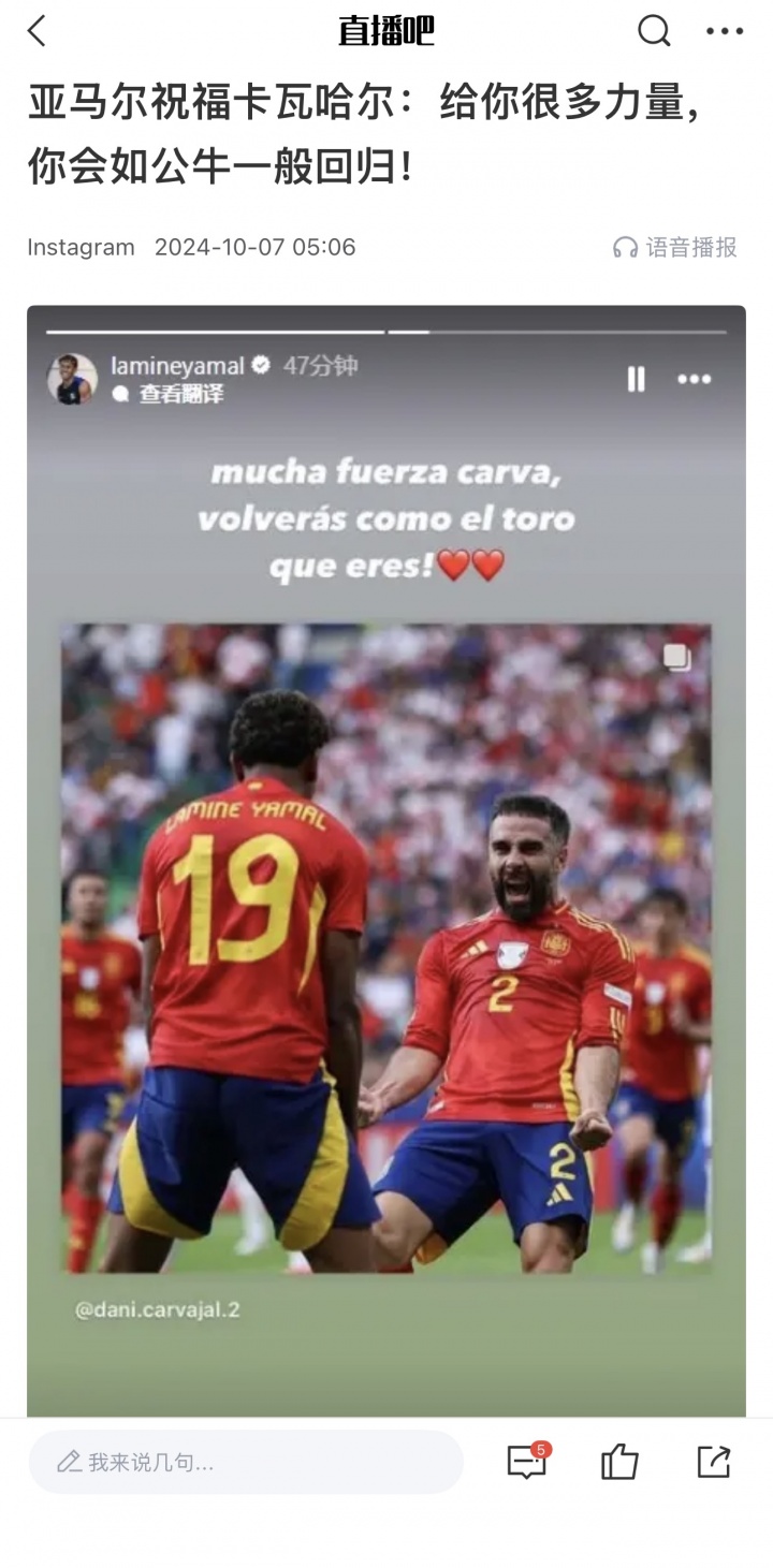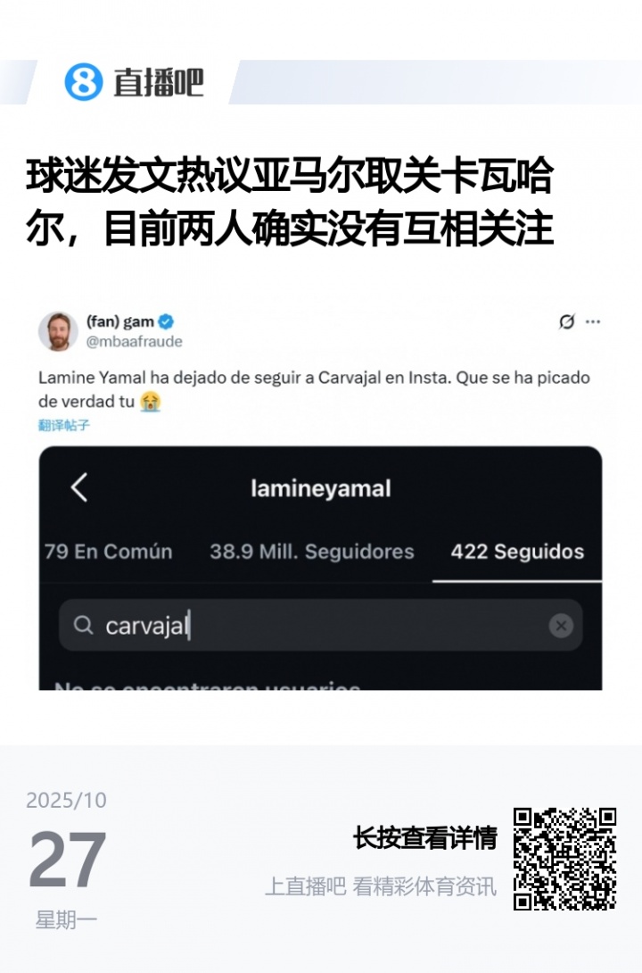 友情 翻船🚢亚马尔、卡瓦哈尔曾友好互动,现赛后冲突+互不关注