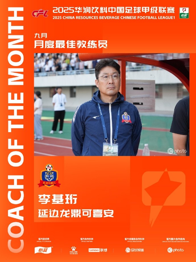 10月31日讯 延边龙鼎主帅李基珩当选为了中甲职业联赛 9月最佳指导教练员。